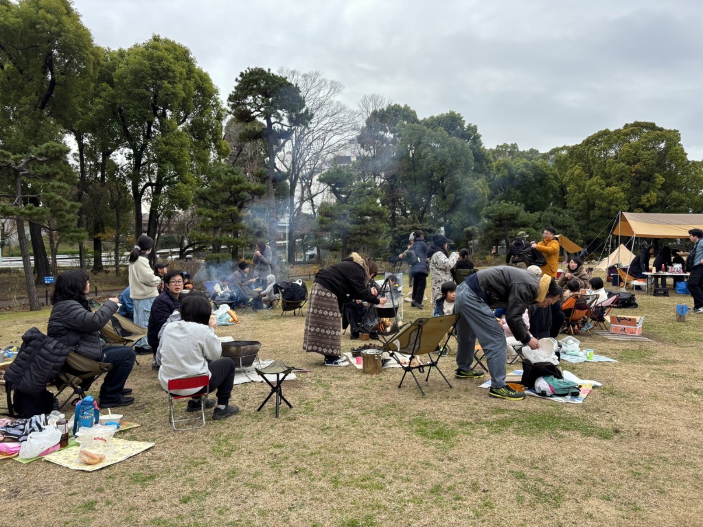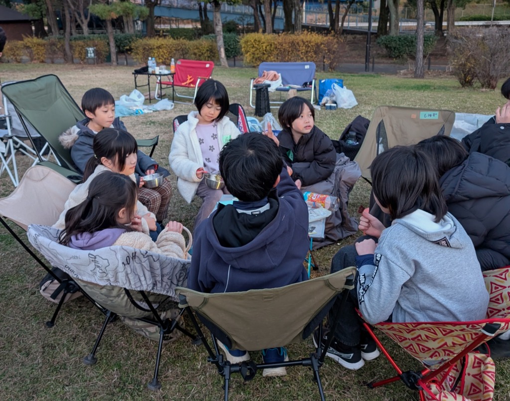 予想以上のお申し込みがあったので、焚き火を近くで囲むことが叶わなかった人も多くて寒かった人もいたのでは!?寒がってテントに籠るかと思っていた子ども達もみんな外で遊んでいたので、大人だけ中に入るわけにもいかず…むしろ大人も遊ばないと寒い!という感じになっていたのが印象的でした。