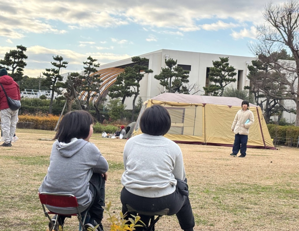 あまりの寒さにストーブ入りのテントにこもる子が出るかと思いきや、外で元気いっぱいに遊んでくれていました。(ぬくぬくテントは、小さなお子さんのお昼寝にお使いいただけていたようで良かったです。)