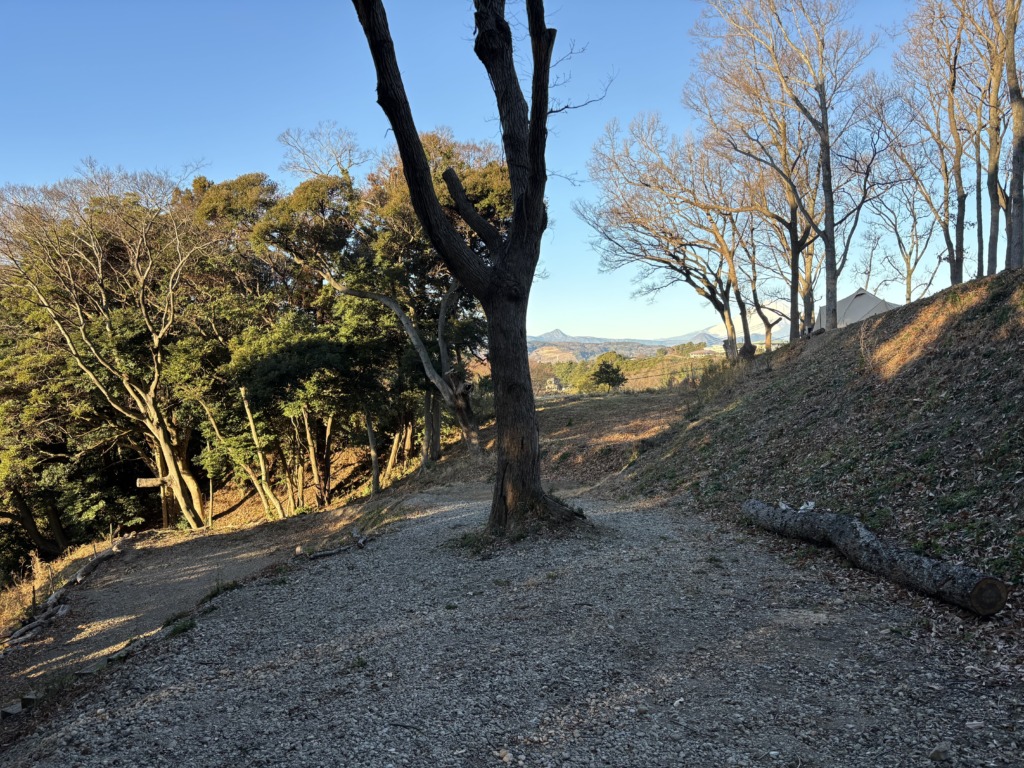 キャンプ場の周囲を行き交う車も少なく、時々通るトラックと飛行機の音以外は穏やかな里山風景。よく見るとみかん畑があったり、開発中のドッグランサイトが見えたりしていて、開放感抜群なサイトでした。